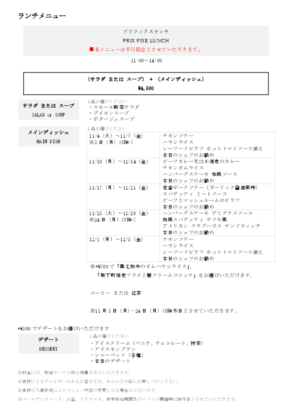 ※11月3日(月)・24日(月)は除外日とさせていただきます。