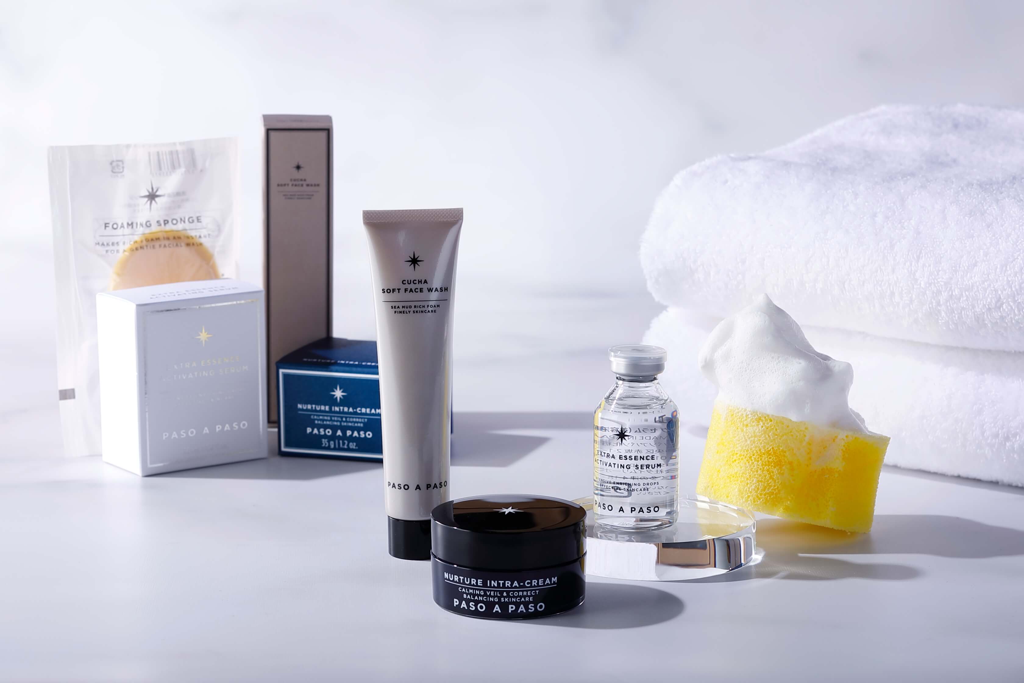 当宿泊プランでご用意するオリジナルアメニティは、自然素材と美容テクノロジーを掛け合わせ、肌本来の美しさを引き出すスキンケアを目指すブランド「PASO A PASO」からアイテムをセレクト。
