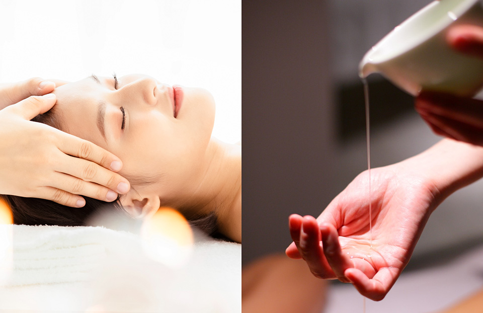 フェイシャルケアでは、お顔の緊張を丁寧に解きほぐし柔軟性と潤いに満ちたお肌へ導きます。仕上げにヘッドセラピーで頭皮を揉みほぐし、日ごろのスマートフォンやパソコン作業で疲れのたまった眼精疲労にもアプローチします。