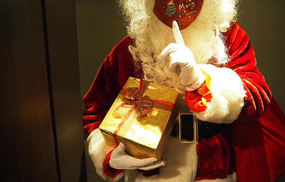 お客さまより事前にお預かりしたプレゼントをサンタクロースが直接お部屋にお届けし、楽しいサプライズを演出します。