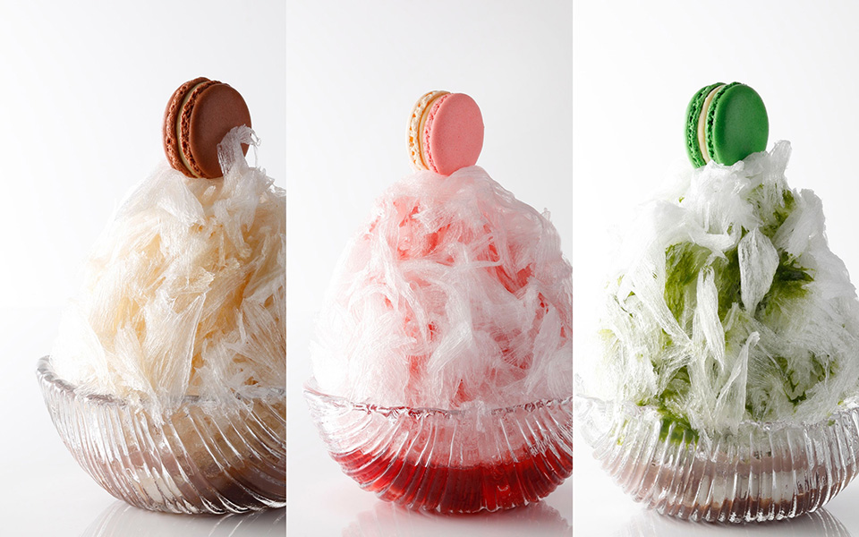 職人が丹精を込めて作り上げた天然氷は不純物を含まず、削るとまるで綿菓子のようなふわっふわのかき氷に。口あたりが非常に滑らかで、かき氷特有の頭がキーンとなる感覚も少なく、それぞれの味を存分にお楽しみいただくことができます。