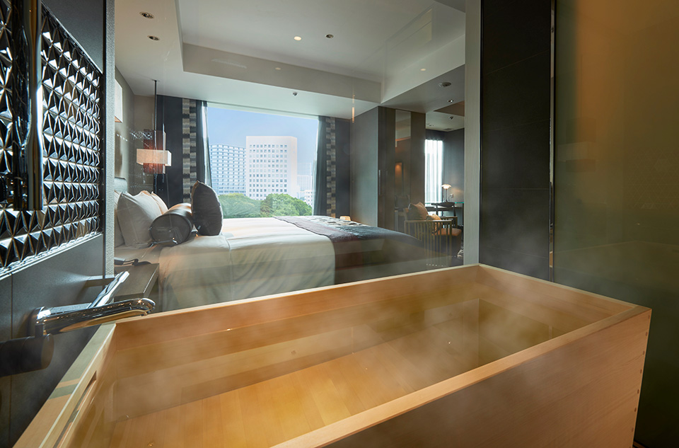 香り豊かなヒノキ風呂をご堪能いただける「新江戸ルーム」で、「銀座 久兵衛」の春らしい特製ちらし寿司をお召し上がりいただける期間限定の宿泊プラン。名店が手掛ける逸品をお部屋でゆっくりと召し上がっていただけるのが魅力の一つです。