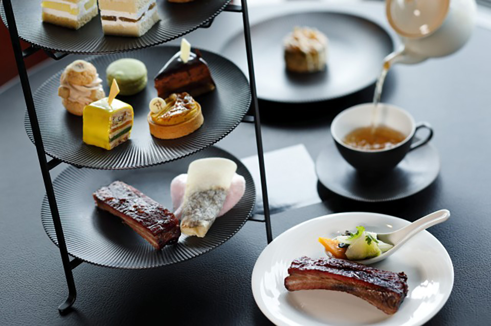 「パティスリーSATSUKI」の“スーパーシリーズ”をはじめ、「ピエール・エルメ・パリ」の代表的スイーツの数々、そして今年で開業50周年を迎える「トレーダーヴィックス 東京」のスペアリブや、ホテル直営の本格上海料理店「大観苑」のシグネチャープレートを一度にお愉しみいただける『スーパーアフタヌーンティー』。第4弾となる今回は、旬を迎えた「栗とぶどう」をテーマにお届けする、秋の味覚が詰まったラインアップです。