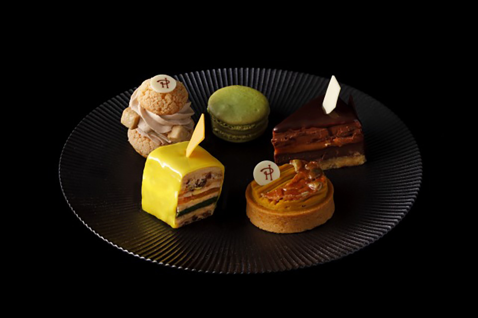 マロンに酸味やほろ苦さを融合させ、独特のハーモニーが絶妙な「サラ」は、パッションフルーツの強い酸味がまろやかな味わいのマロンによってほどよく緩和され、抹茶を加えることでバランスの優れた味わいに。また、濃厚なマロンクリームとマロンシャンティにより、口いっぱいに栗の甘さが広がり、香り高く芳醇な甘みのある洋梨のコンポートを合わせた「シュー オマージュ」など、秋のシグネチャー全5種を一堂にお愉しみいただけます。