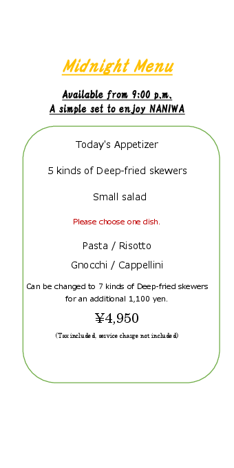 | Hours | Dinner : 5:00p.m. - 10:00p.m. Open Fridays, Saturdays, Sundays and holidays |