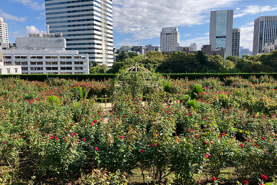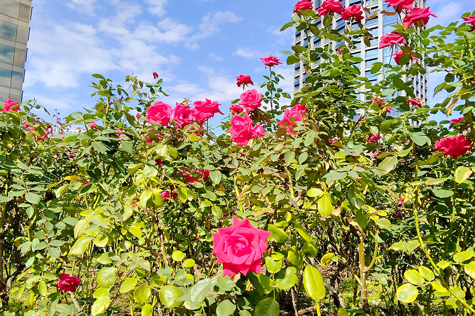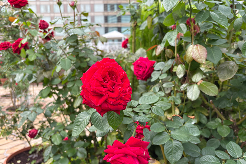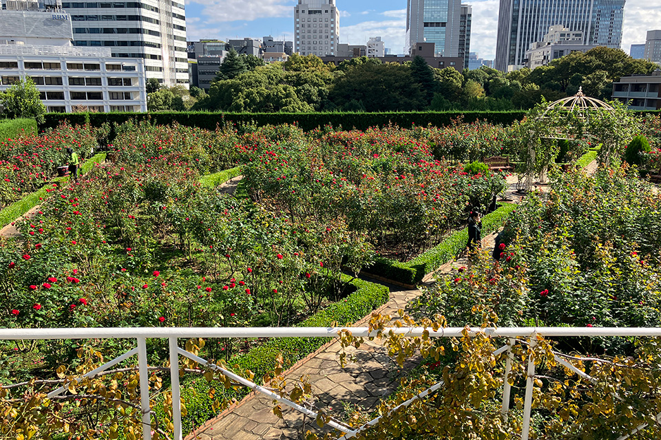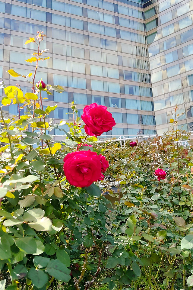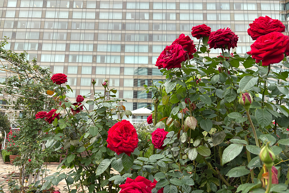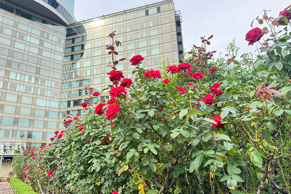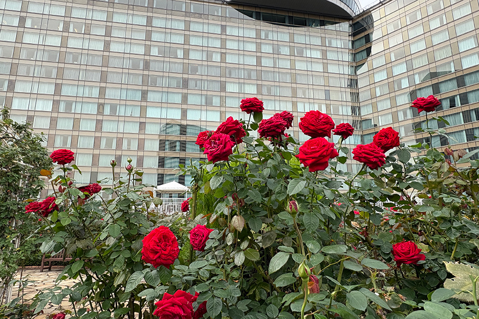 Designed by renowned British floral decorator Kenneth Turner, Hotel New Otani Tokyo’s elegant Red Rose Garden first took bloom in November of 2000. Located on the rooftop as a means to insulate heat and thus reduce air-conditioning power, the garden with 30,000 red roses is nourished with compost made from restaurant leftovers and watered with recycled drainage water, contributing to the hotel’s sustainability efforts in several ways.