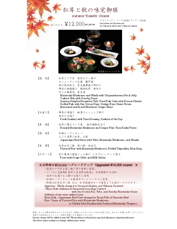 Dinner | ¥12,000 and up |