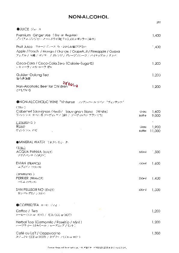 | Prices | Lunch | Adults | Weekdays | ¥10,500 | Children | ¥5,500 |