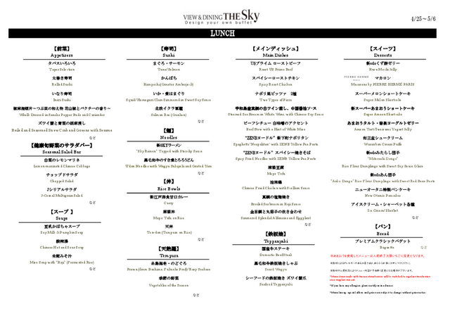 | Seats | 190 Private room capacities: 2-10 (SKY-A) and 2-8 (SKY-B) persons | |||||