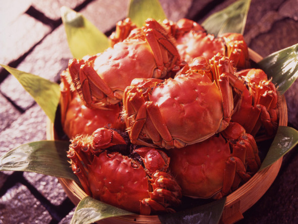 中国料理の秋の味覚といえば、なんと言っても「上海蟹」。近年では高級食材として広く認知されており、ほかと比べて鮮やかなオレンジ色で濃厚な味わいの味噌が特長的です。蟹肉は小ぶりながらも旨味が凝縮されており、強い甘みと上品な味わいが多くのファンを魅了します。
