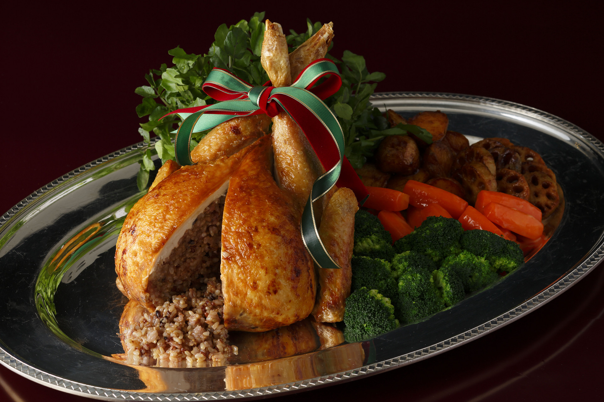 ホテルニューオータニ幕張の総料理長 小出裕之が手がける、自家製テリーヌ、鴨肉、フォアグラなどを詰め込み香り豊かなパイ生地で焼き上げたフランスの伝統料理「鴨肉とフォアグラのパテ・アンクルート」や、ホテルオリジナル八穀米“Jシリアル”を使用したスパイシーピラフを、国産鶏に詰めてジューシー焼き上げたボリュームたっぷりの「スパイシーJシリアルローストチキン」などクリスマスパーティーにも最適な逸品をご用意しました。