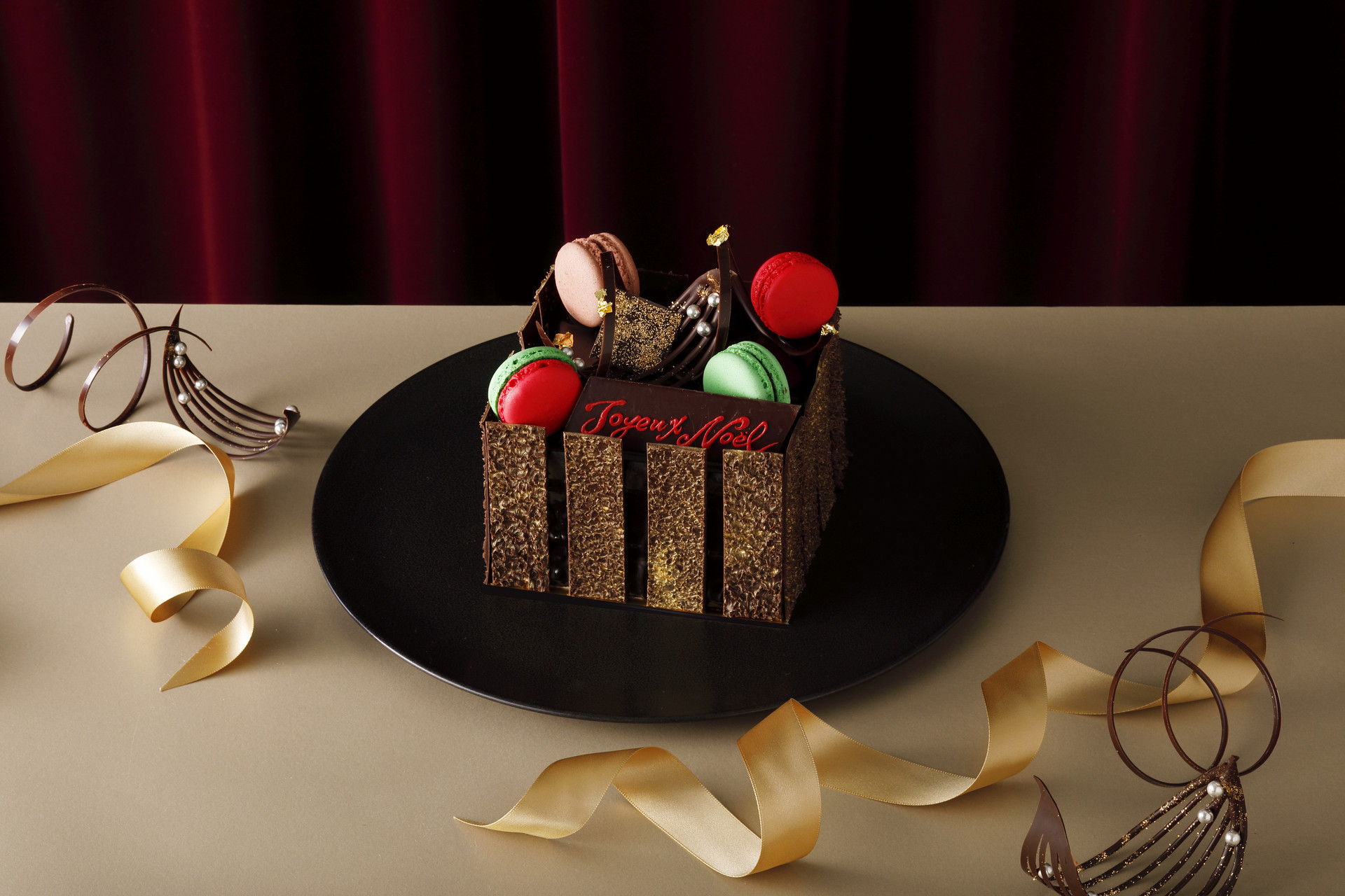 濃厚なチョコレートの味わいが広がる『スーパーオペラレジェール』は、エスプレッソを含ませた7層のビスキュイ、ダークガナッシュやキャラメルバタークリームを挟み込み、全14層にも重なるビターで大人な味わいに仕上げました。キャラメリゼしたナッツを食感のアクセントに加えた、繊細で濃厚な味わいと煌びやかな装飾がクリスマスにぴったりのスイーツです。