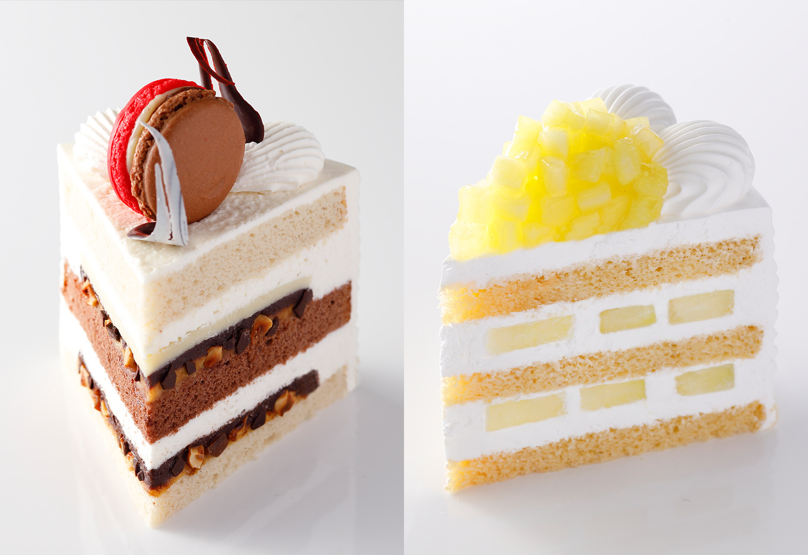 スーパーチョコレートショートケーキ(左)、スーパーメロンショートケーキ(右)をビュッフェサイズでご用意。