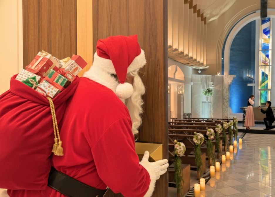 おふたりの特別な夜をより印象的に演出するため、サンタクロースがサプライズで登場する特別オプションもご用意。大切な瞬間を、サンタクロースが心を込めて祝福します。