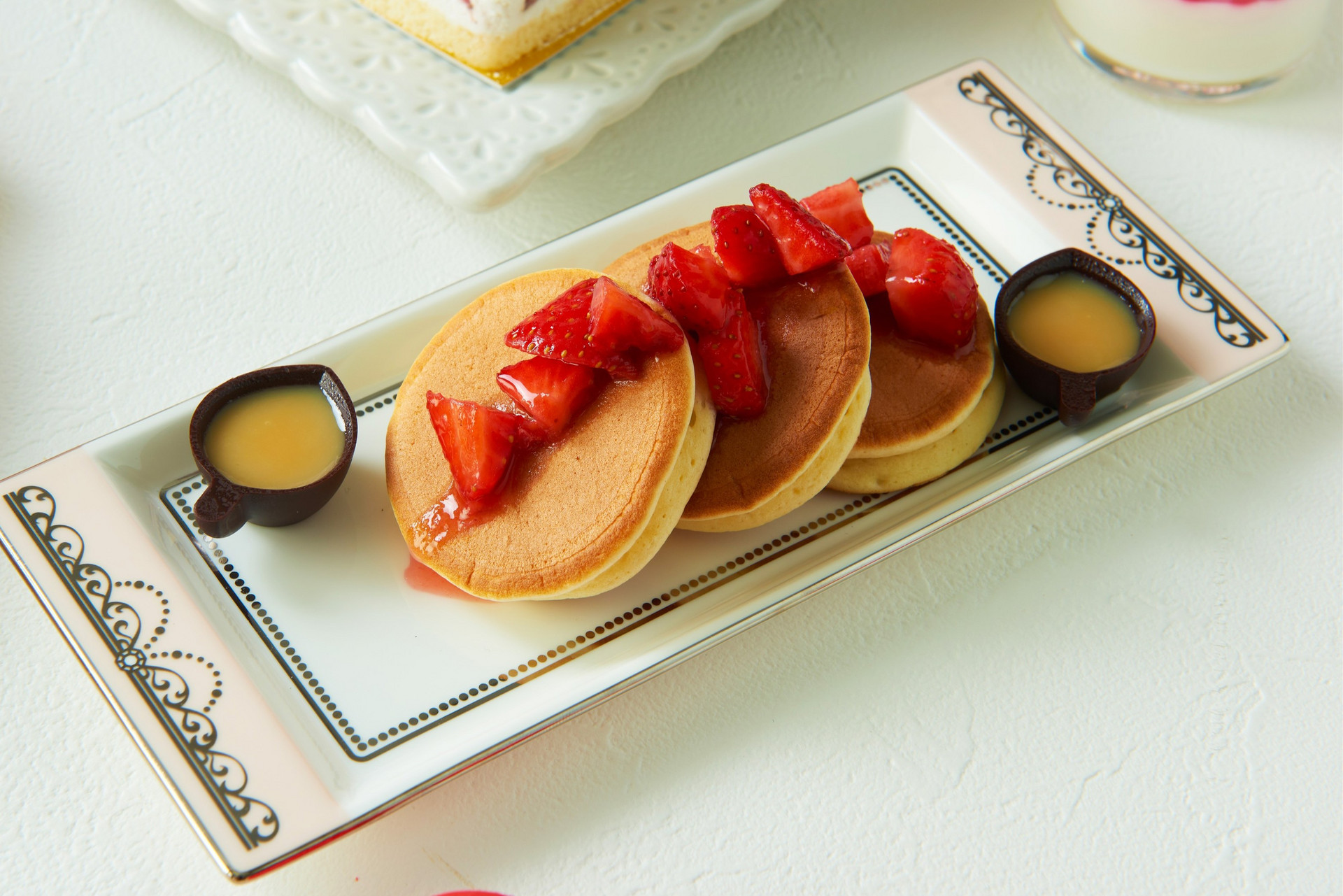 いちごのパンケーキ ショコラカップのハチミツ添え
