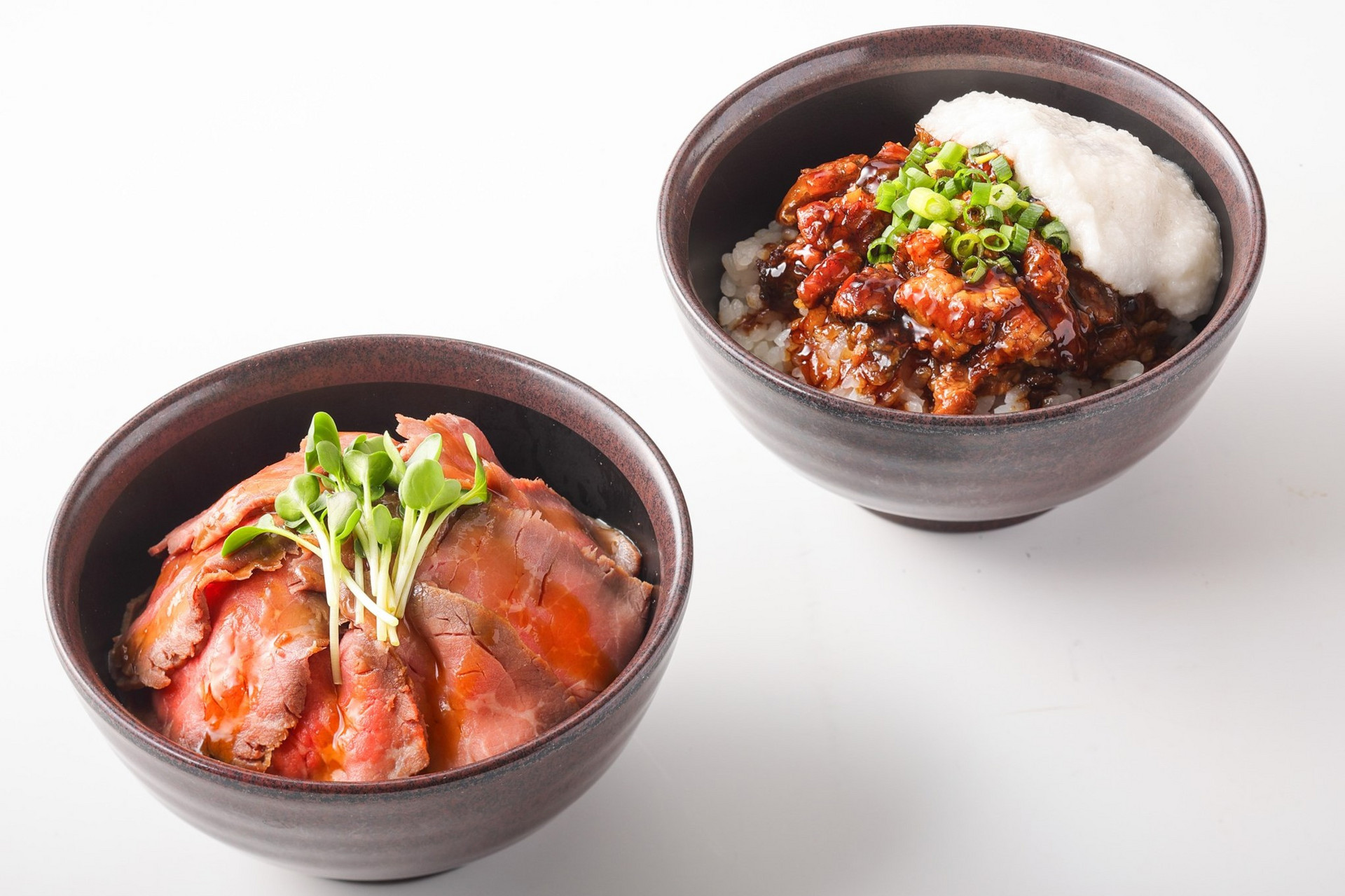 盛りつけ例:ローストビーフ丼&うなとろ丼