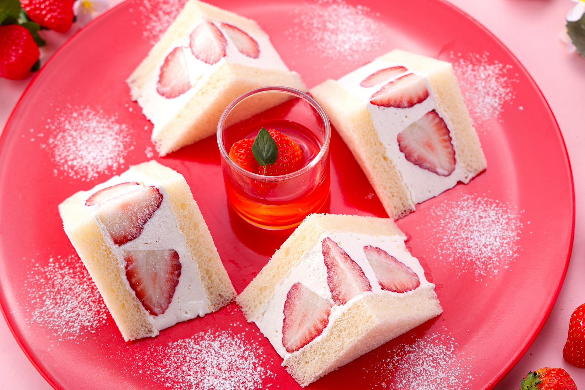 今年も旬を迎えるいちごをふんだんに使用した『ストロベリーサンドウィッチ』が登場!甘酸っぱさが広がるフレッシュいちごを、ホテルメイドのふわふわパンとくちどけ滑らかなクリームで華やかにサンドしました。美しい断面に思わず見惚れてしまうほど。さらに中央にはいちごゼリーを添え、濃密な果実感と奥深い甘酸っぱさの余韻をお愉しみいただけます。ルビーのように輝く断面、口いっぱいに広がる芳醇な甘み、そして見た目にも華やかな仕上がりは、まさに“頬張る度に幸福度が増すご褒美スイーツ”。いちごならではの心安らぐ香りとジューシーな食感で、甘いひとときをお過ごしください。