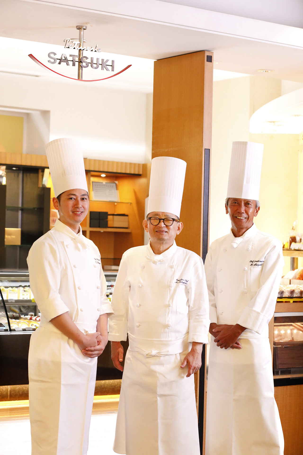 (左から)第7代目シェフパティシエ 森山雄大、第5代目シェフパティシエ現総料理長 中島眞介、第6代目シェフパティシエ 鈴木薫