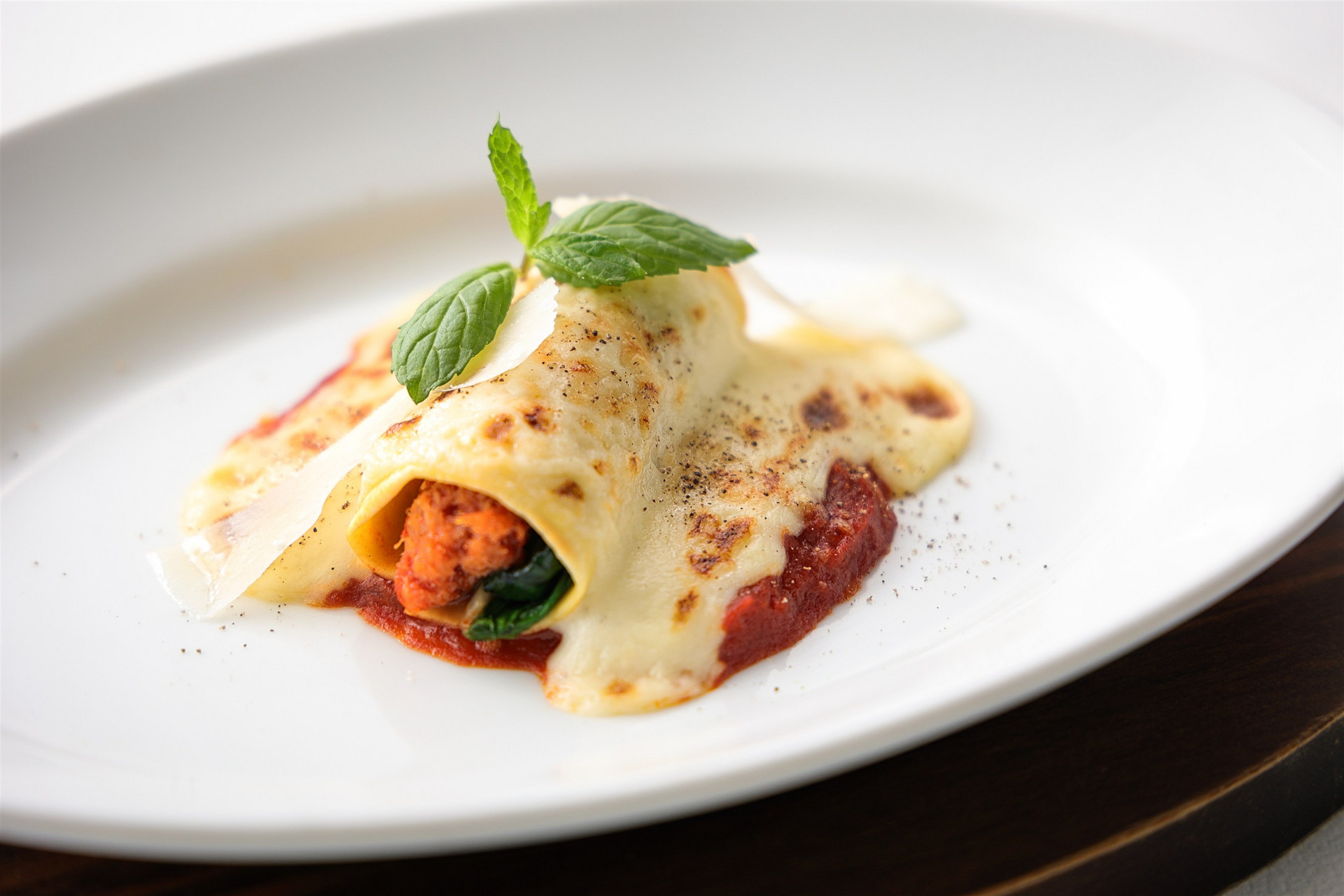 また、“カネッローニ ズワイガニとほうれん草のグラティナーレ”は、パイプ状の筒型パスタであるカネッローニの中に、旨みたっぷりのズワイ蟹とほうれん草の煮込みを詰めて、パスタの上からベシャメルソースとチーズでグラタン状に焼き上げてご提供。寒い日にもぴったりの逸品です。