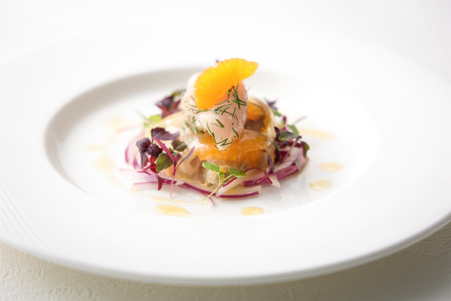 鰤のカルパッチョ リグーリア州のオリーブオイルと柑橘