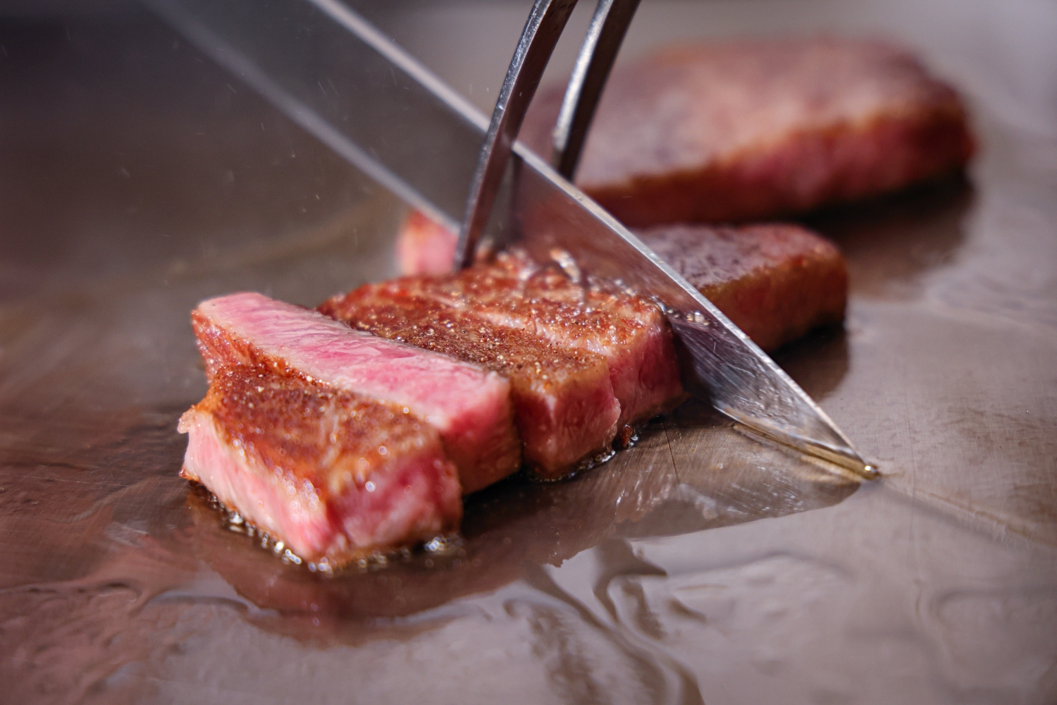 琵琶湖をはじめ、滋賀県の自然豊かな環境で育まれた近江牛は、きめ細やかな肉質と甘い脂、口の中でとろけるような食感が特長です。ほかにも香川県産オリーブ牛など、こだわりの銘柄牛を取り揃えました。シェフたちが繰り広げるライブ感あふれる熟練の技とともに、銘柄牛が織りなす美食体験を五感でお愉しみください。