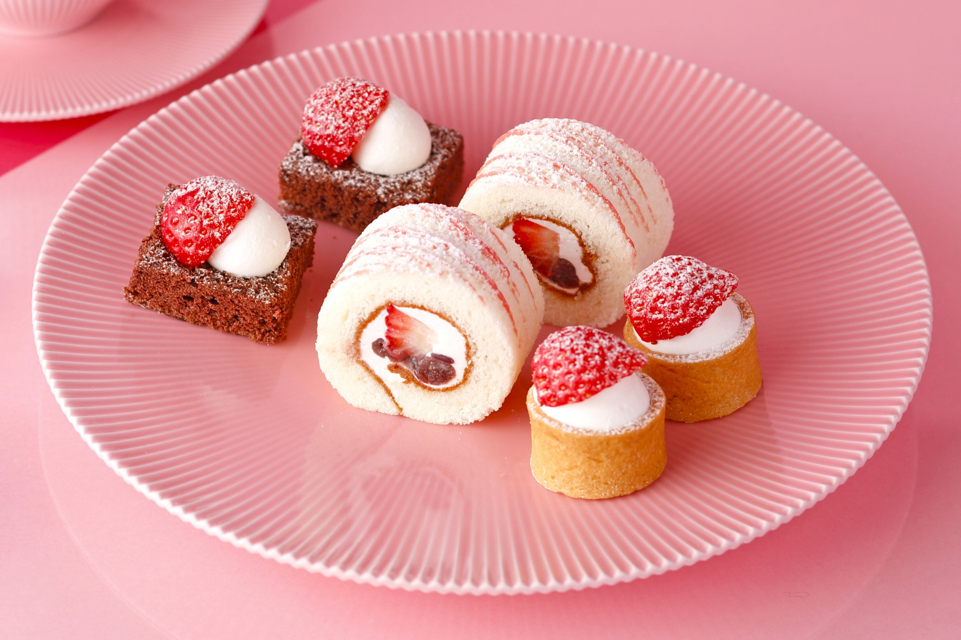 チョコレートシフォンケーキ、あまおうロール、あまおうタルト