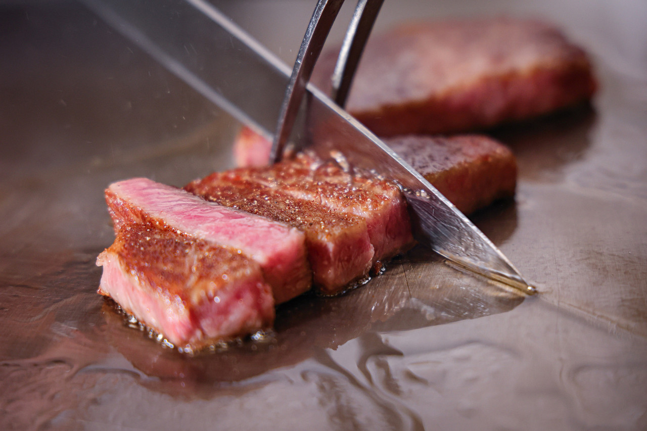 目の前の鉄板カウンターで、厳選された素材を焼き上げるシェフの華麗な手さばきに感嘆しつつ会話を楽しめる醍醐味は鉄板焼ならではのものです。上質の味、香り、美味しい音をお楽しみください。