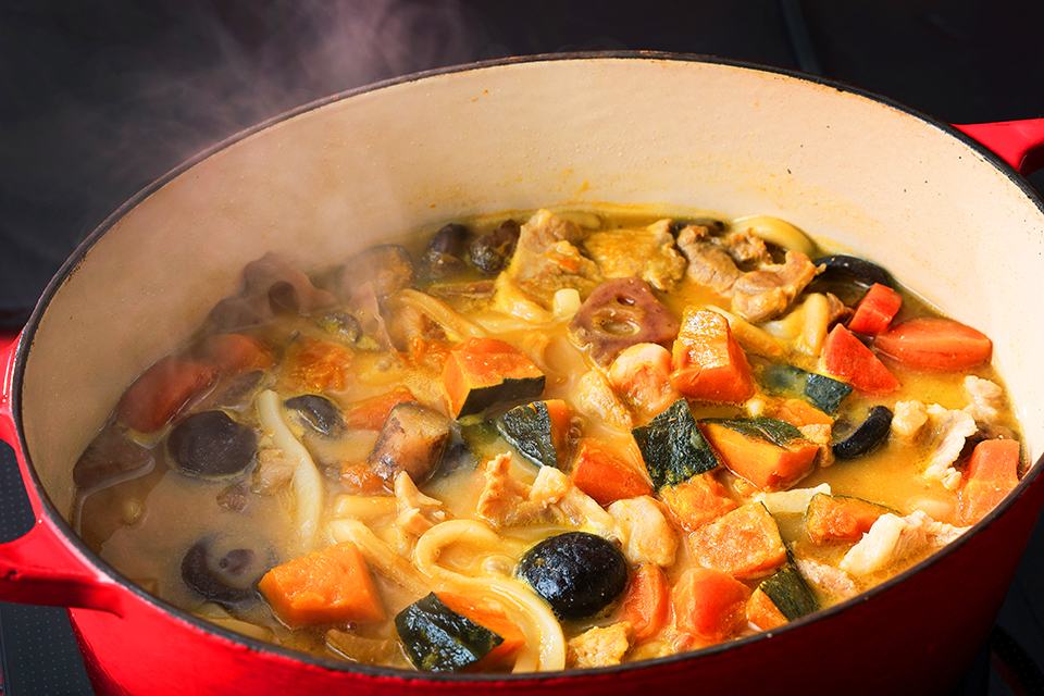 夏の疲れを癒やし、秋を健やかに過ごす癒しメニューもご用意。かぼちゃの甘みと旨みが溶け込んだスープが優しい味わいの「ほうとう風 味噌うどん」や、ホテルブーランジェが毎日焼き上げるホテルメイドブレッドに秋の