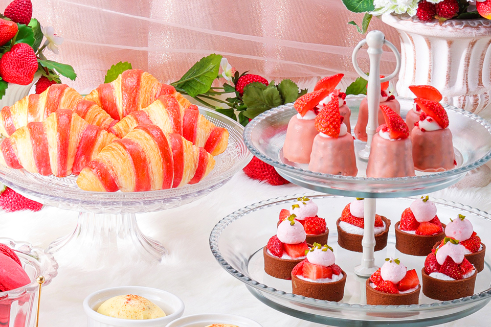 このほか、「いちごタルト」や「いちごロール」、「いちごゼリー」といった人気のいちごスイーツに加え、人気再来中のカヌレにいちごチョコレートをコーティングした「いちごカヌレ」、生地にいちごを練りこんだ「いちごクロワッサン」など、贅沢ないちごスイーツの数々を心ゆくまでご堪能ください。
