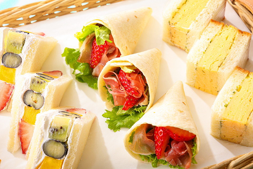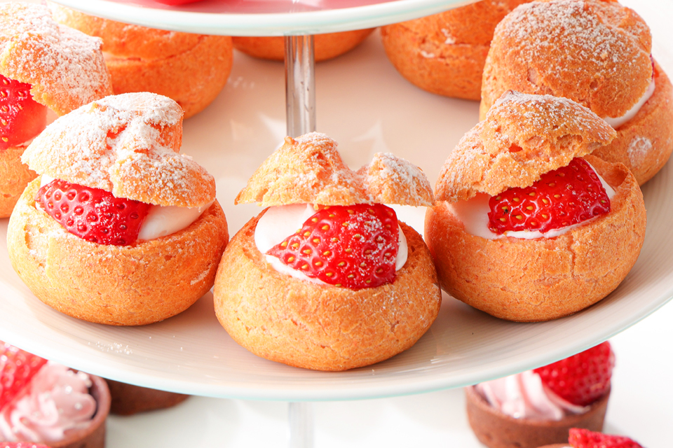 新スーパーあまおうショートケーキやナポレオンパイなどの王道スイーツに、作り立てを提供する “いちごオムレット” や “いちごの生搾りアイスモンブラン” 。ローストビーフやカレー、ピッツァなど、食事メニューもたっぷりとご用意いたします。