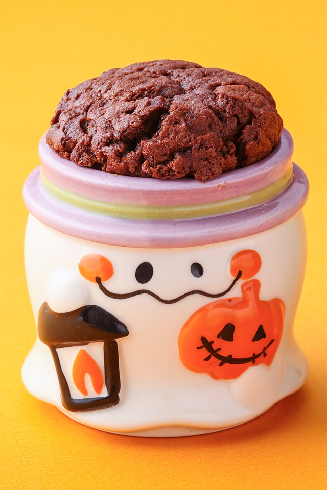 濃厚チョコレートとチョコチップをたっぷり練り込んだ チョコの美味しさがぎゅっと詰まった焼き菓子。おばけのキュートな表情が可愛いデザートカップ(陶器)入りで、ハロウィンを華やかに盛り上げます。