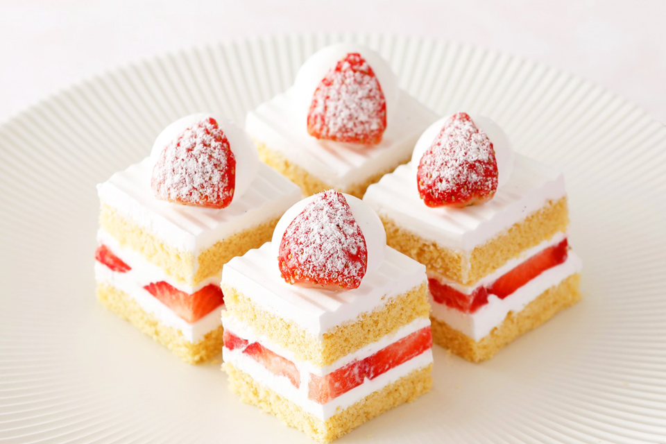 “スーパーシリーズ”の始まりでもある『新スーパーあまおうショートケーキ』。シンプルながらも、博多あまおうの魅力を存分に味わえるよう、カステラにも使われる長崎県産「太陽卵」を使用したスポンジ生地・九州大牟田産の生クリームを採用した極上のショートケーキです。