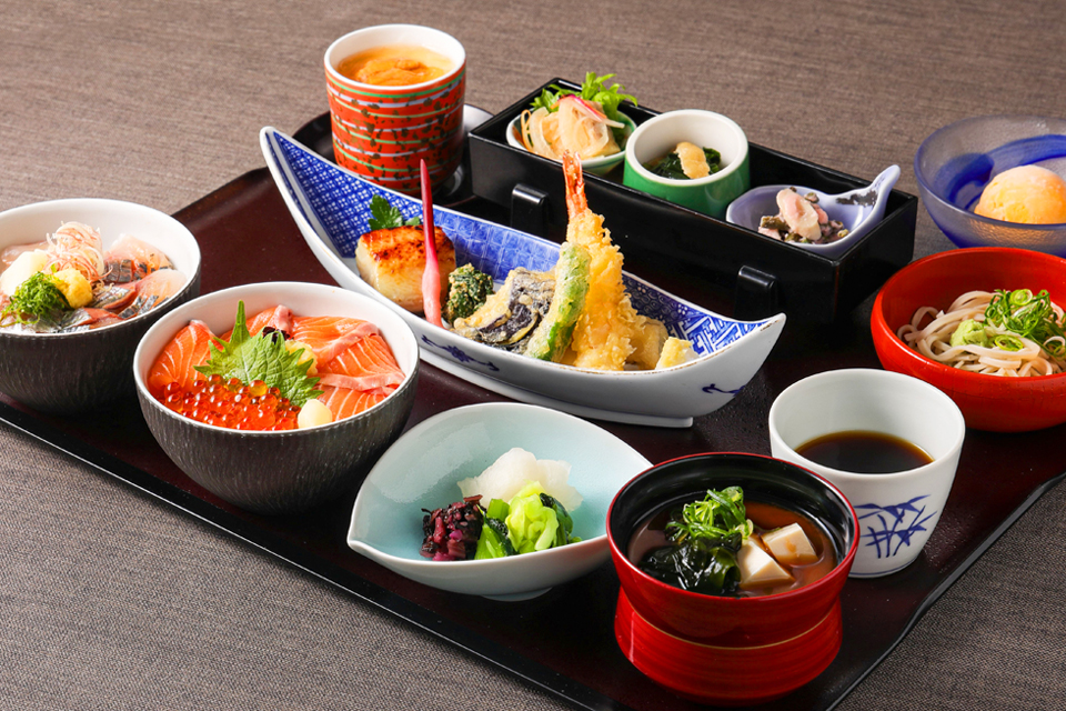 「お好み丼御膳」の魅力をシンプルに味わいたい方には、選べる2種の丼ぶりにミニ蕎麦や小鉢を添えた、軽やかなセットもご用意。その日の気分に合わせた自由な組み合わせで、素材本来の味わいをお気軽にご堪能ください。