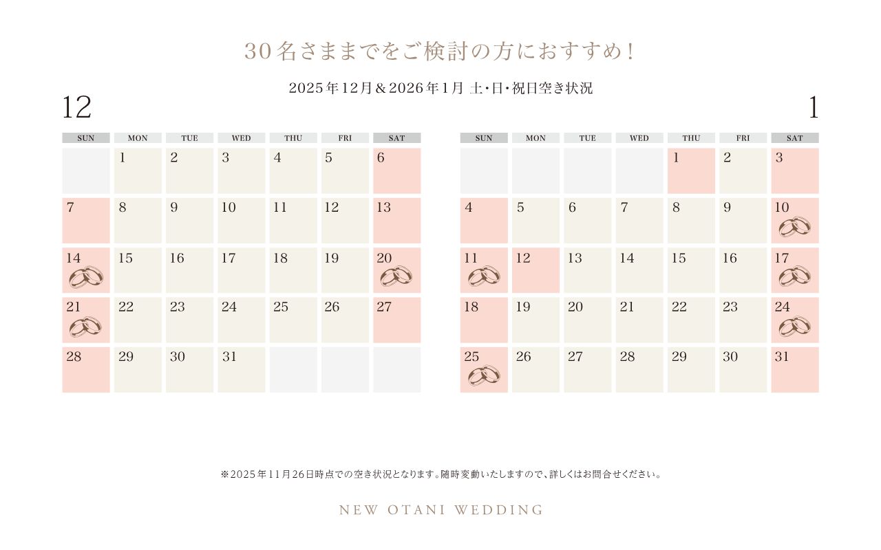 ※指輪アイコンのあるお日にちがご案内可能です。