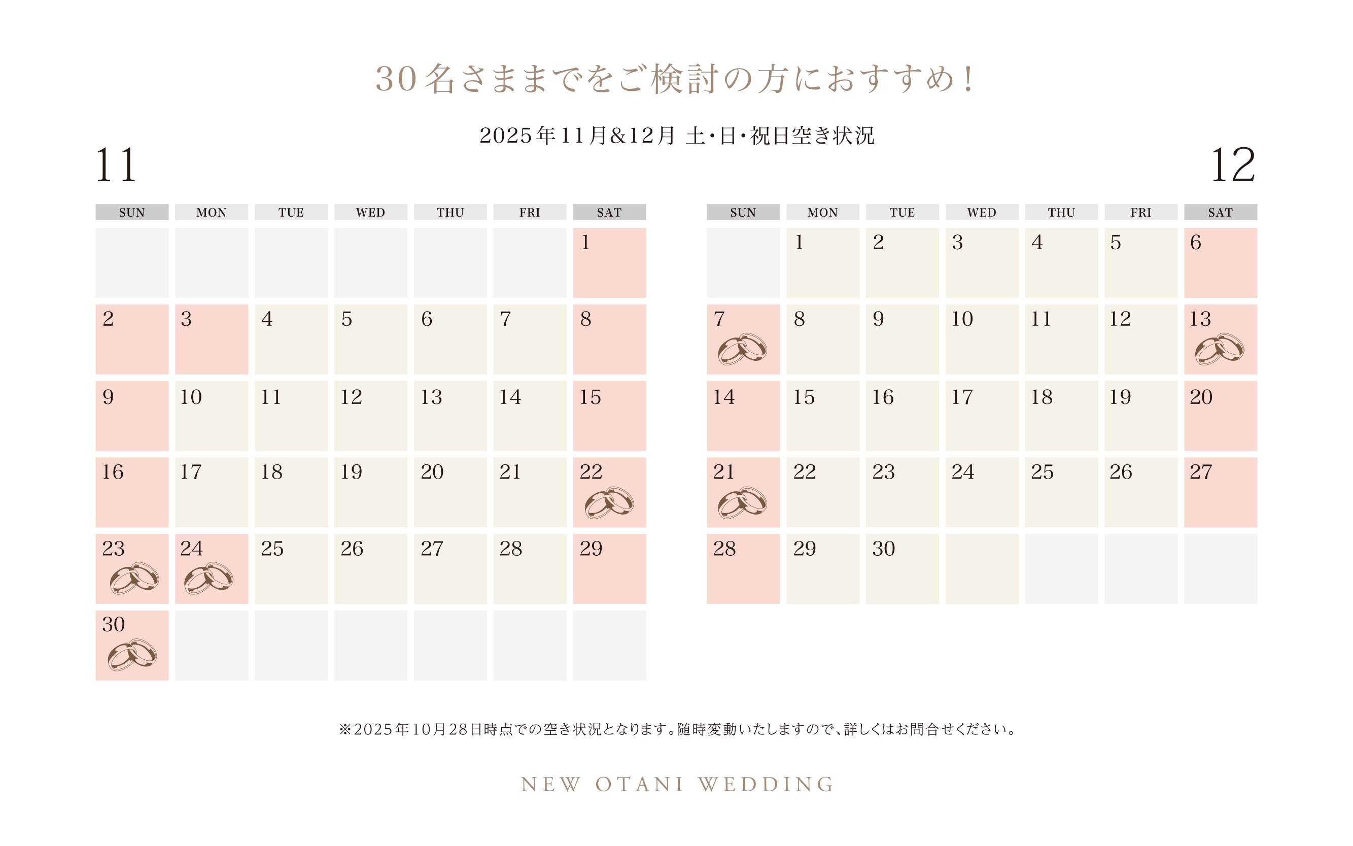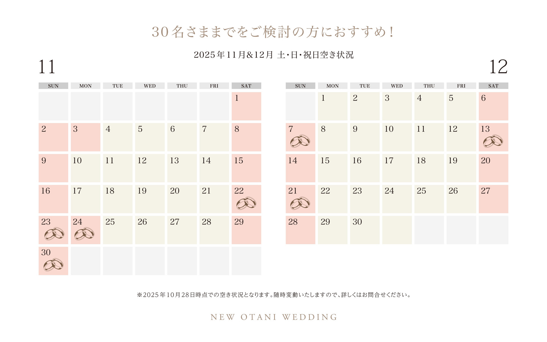 | 利用期間 | 2025年4月1日(火)~2026年3月31日(火)の挙式・披露宴 |