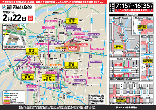 大阪マラソン開催に伴い、大阪市内では交通規制が行われます。