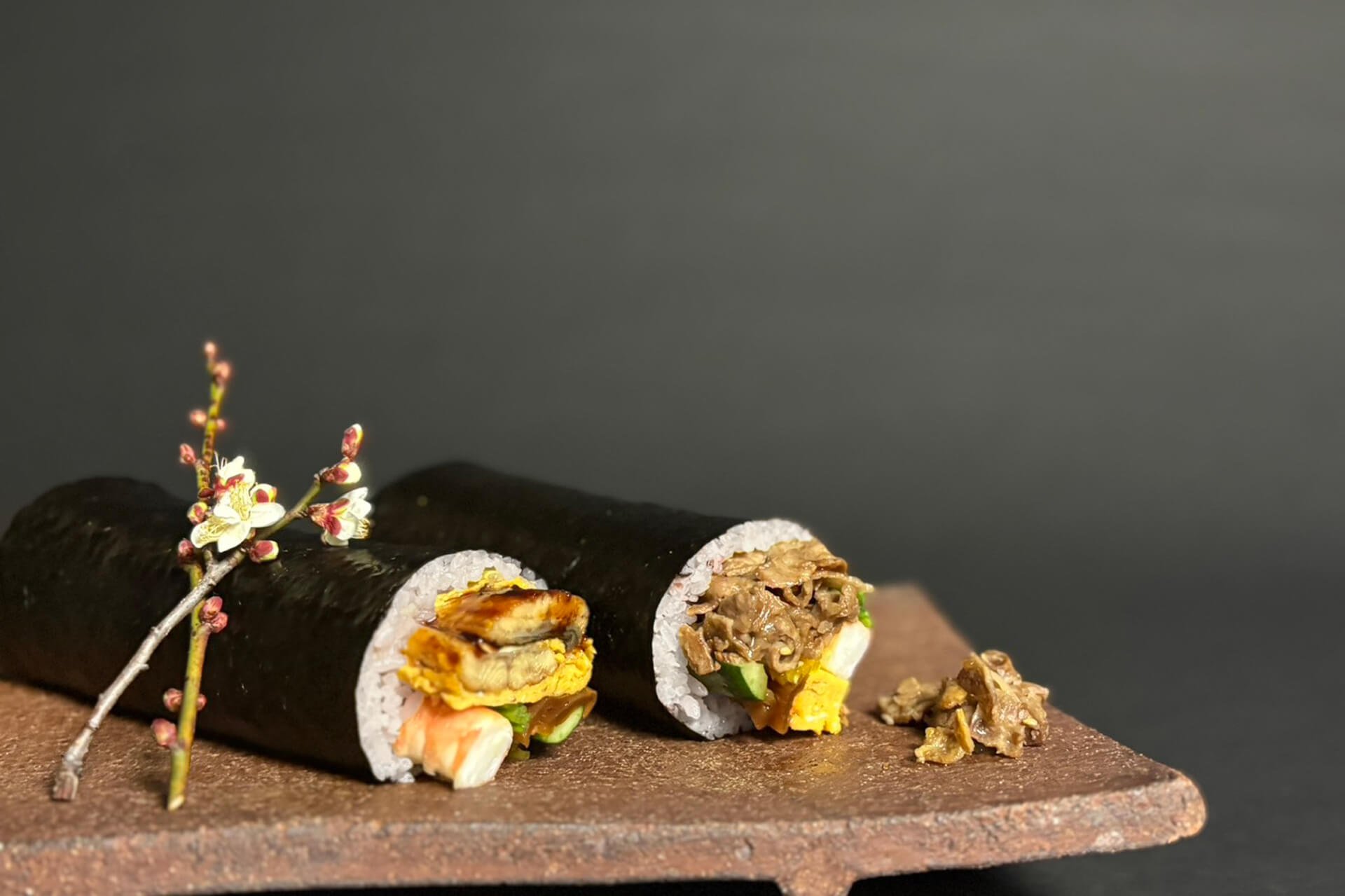 一心が贈る、一年の多幸を願う贅沢な恵方巻。秘伝のタレで焼き上げた「招福 鰻巻」と、実山椒の爽やかな香りが肉の旨みを引き立てる「招福 黒毛和牛巻」。職人の技が光る、ホテルならではの福をぜひご家庭で。