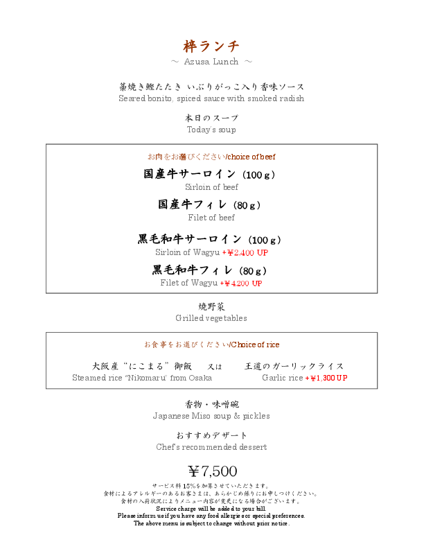 ※食材によるアレルギーのあるお客さまは、あらかじめ係にお申しつけください。