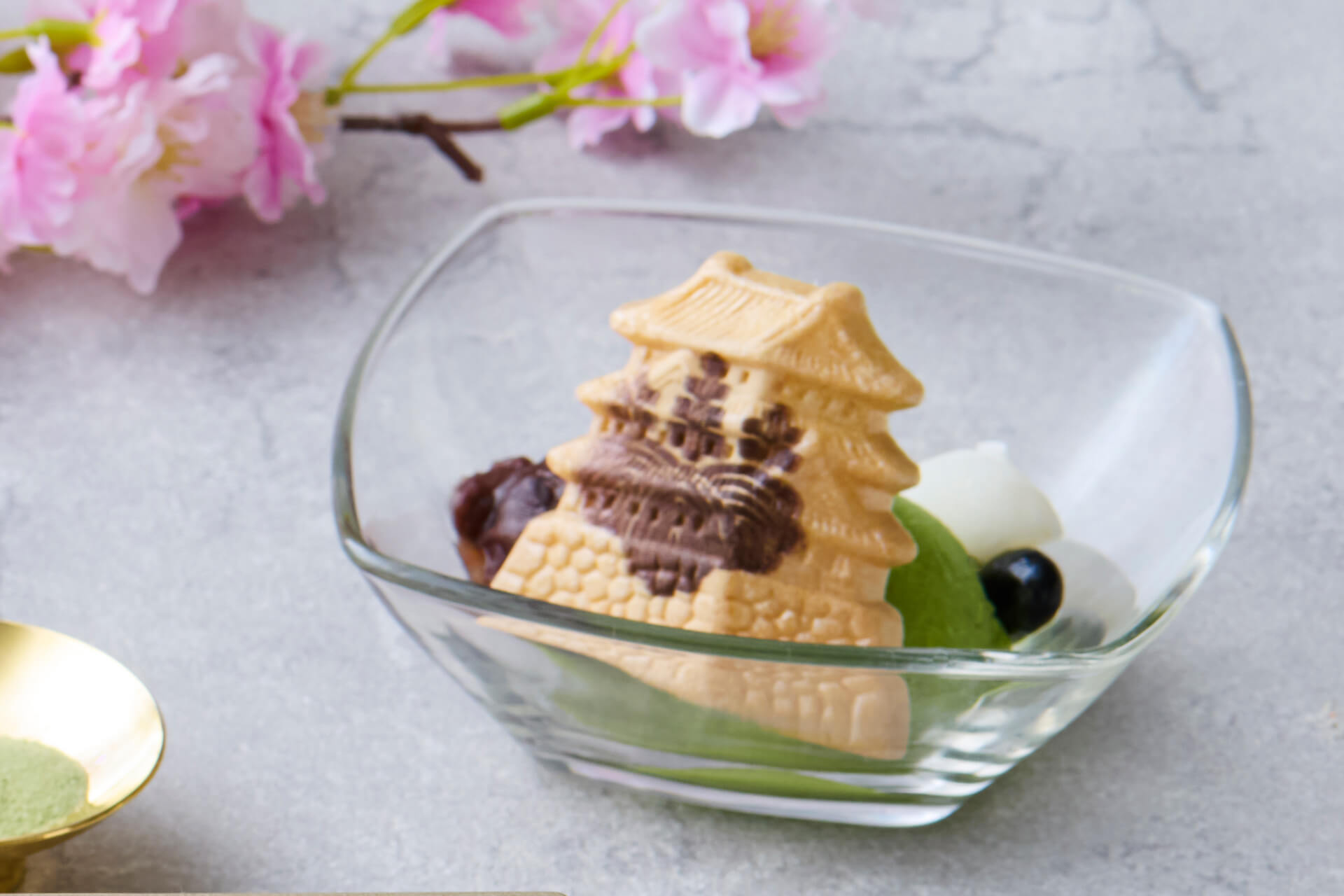 抹茶やあんこを盛り込み、激動の時代を駆け抜けた二人が、しばし戦を忘れて茶を愉しみ、語らった穏やかな時間をイメージしました。