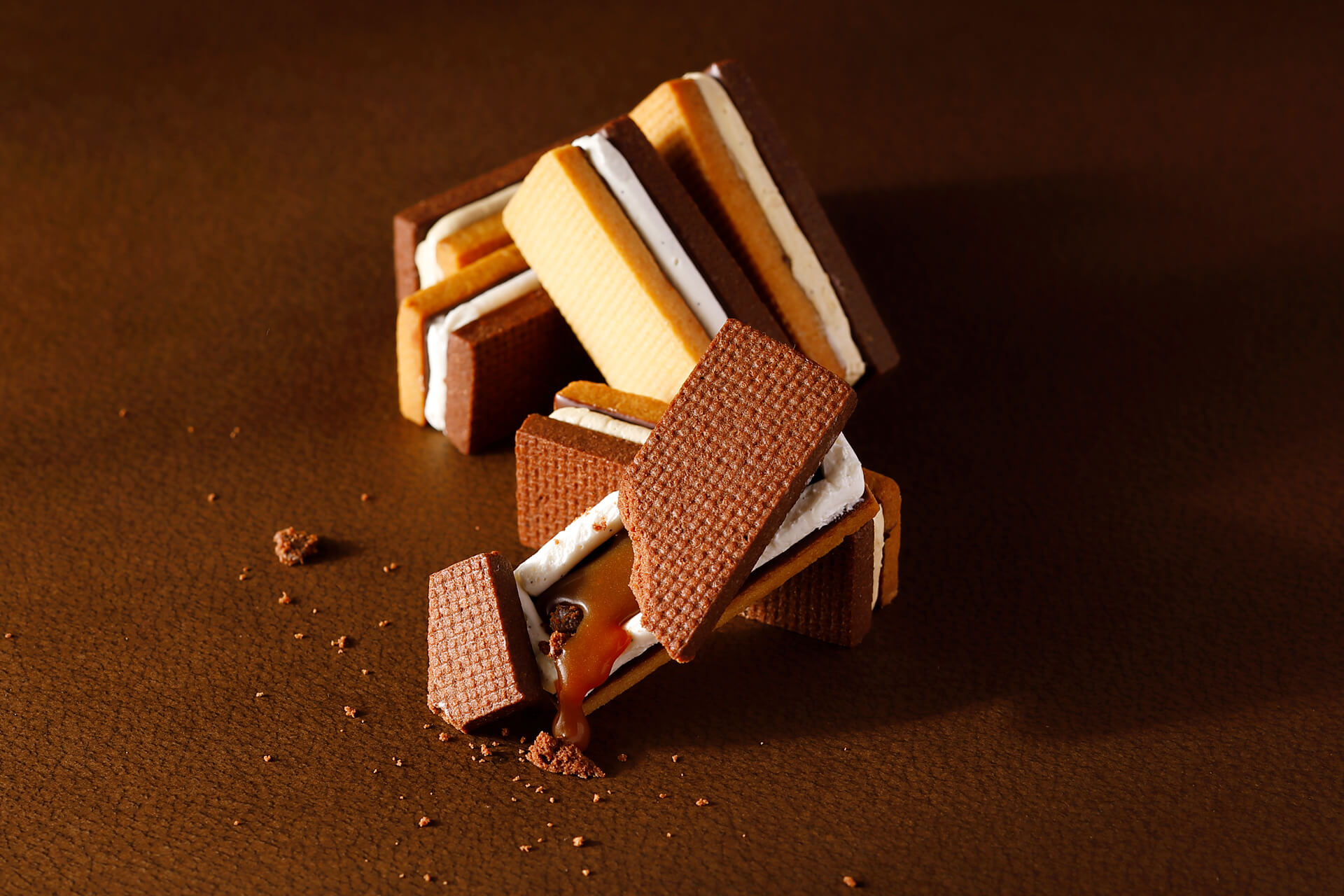 食感をお愉しみいただけるよう、厚めに焼き上げたバニラとチョコレートのクッキー生地に、豆乳ベースのバニラとキャラメルクリームをサンドした2種類のフレーバーをご用意。