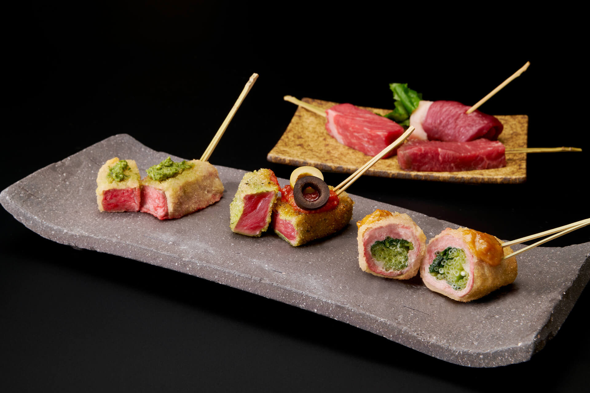 サーロイン串、仔羊串、鴨が噛みしめるほどにあふれる三者三様の肉汁が絶品の一品。