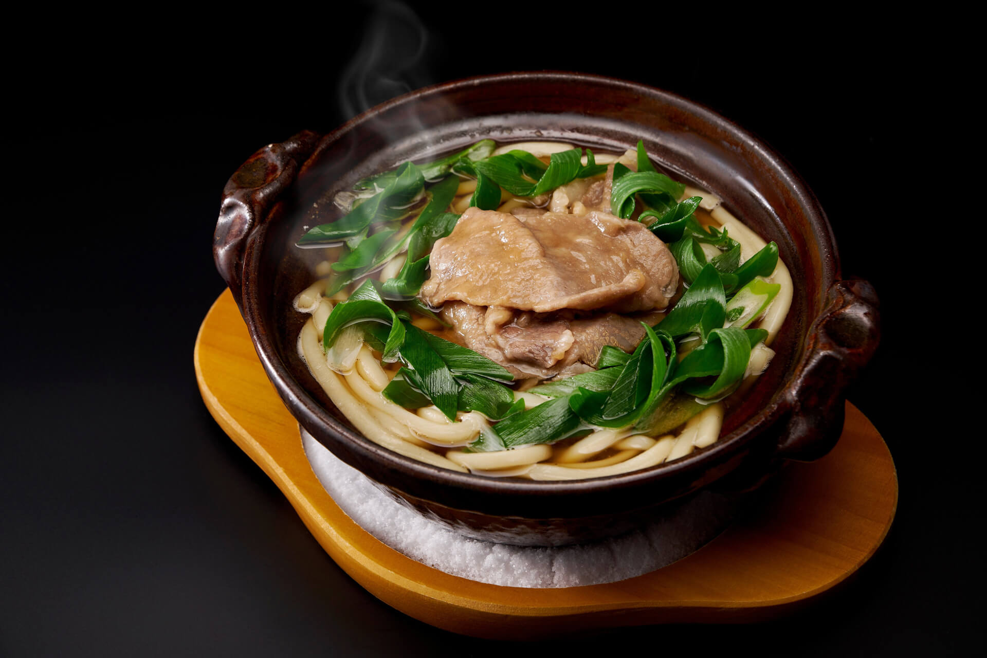 黒毛和牛の贅沢な旨みが溶け出した出汁が絶品。熱々の鍋で煮込んだコシのあるうどんを堪能する至福の一杯。