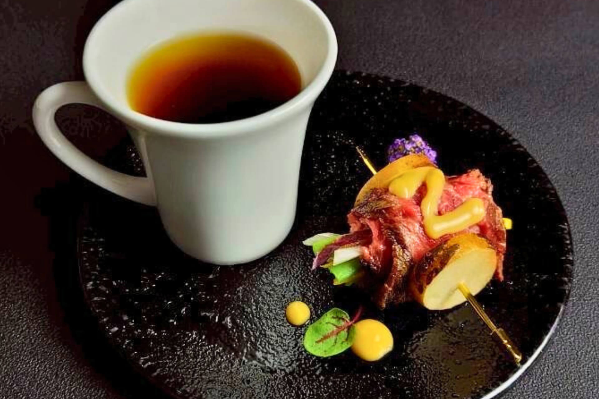絶景メインダイニングのSAKURAからは、牛肉のアミューズとして「ローストビーフの"牛車Style"とオックステールコンソメスープ」をいい肉の日にご来場の皆さまへプレゼント。