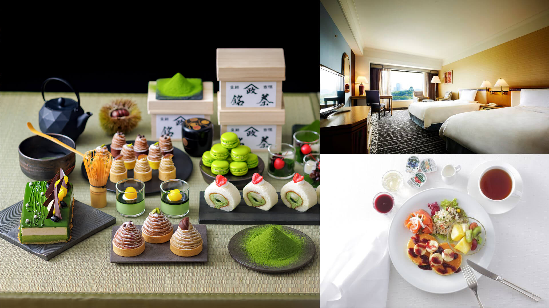 ※表示料金は1名さま分の1泊室料、朝食、スーパースイーツビュッフェ、オプションドリンク1名1杯、山政小山園のお茶ティーバック(煎茶・焙じ茶)1室1セット、税金・サービス料を含みます。