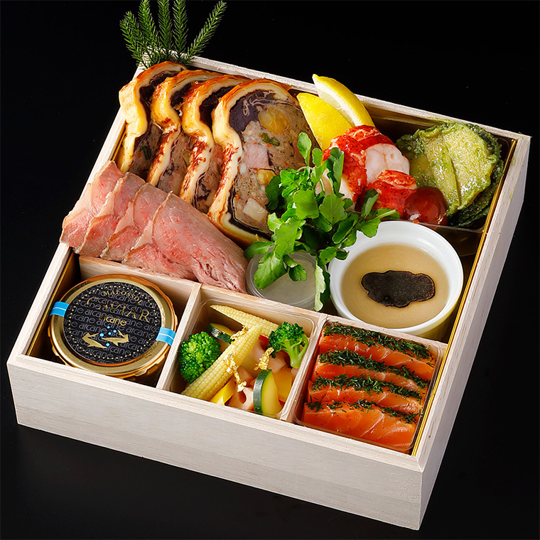 和風二段、新江戸前ちらし寿司、トゥールダルジャン 東京 一段、ローストビーフ一段、中国料理一段