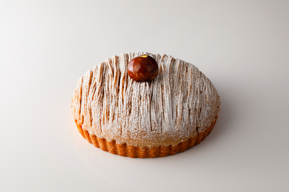 渋皮栗に軽やかな生クリームをトッピングし、味わいの異なる3種の栗をブレンドしたオリジナルマロンペースで包み込みました。ペーストに加えた隠し味のラム酒がほんのり香る、栗の味わいを引き立てます。サクサクの土台にも栗を忍ばせ、どこを食べても栗のホクホクとした味わいをお愉しみいただけます。