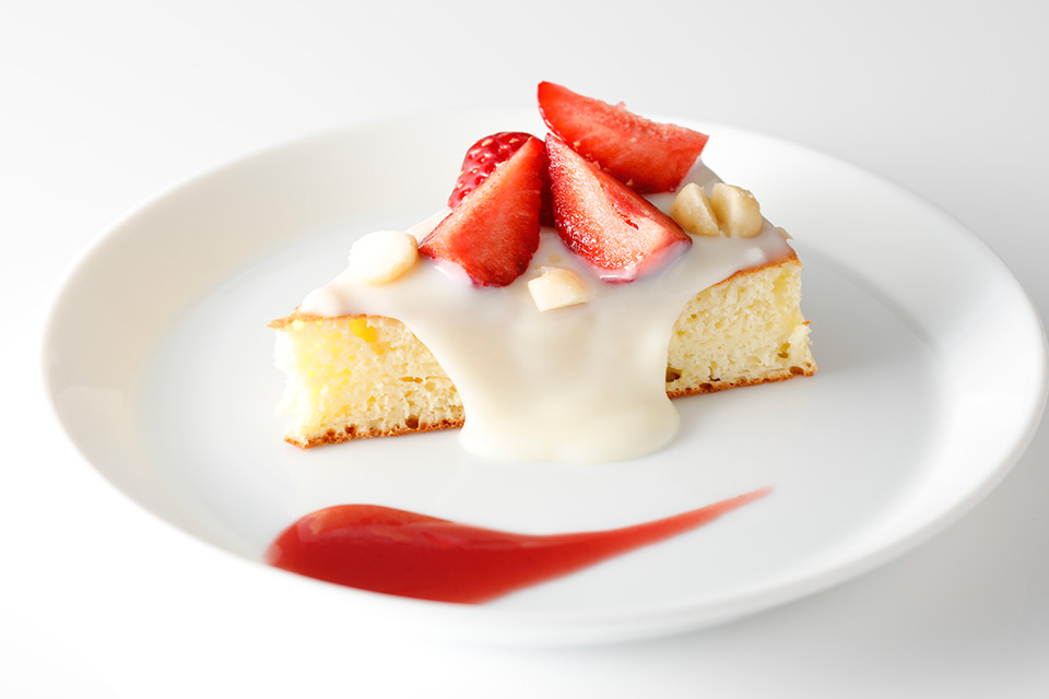 あまおうの甘さおいしさを生かし、艶やかなソースにしました。とろみがありつつ果肉感も感じられるのは、粒がしっかりしたあまおうならでは。フレンチトーストに抹茶をたっぷりしみこませ「あまおう×抹茶」で和洋折衷の相性良いおいしさを体感していただきたいです。おすすめの食べ方は、まずはシンプルに抹茶フレンチトーストにあまおうソースとクレームシャンティを添えて。途中からメープルシロップをかけるなどお好みの美味しさを見つけてくださいね。