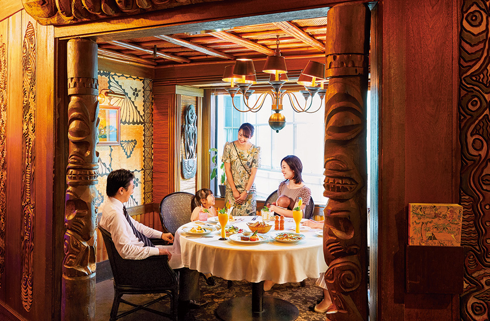 "島の暮らしを取り入れた集い場をつくりたい" そんな創業者ヴィクター・バージェロンの想いから1934年にサンフランシスコで開業したアイランドリゾートダニング「TRADER VIC'S」は、南国の楽園を思わせる内装と、西洋と東洋の美食を掛け合わせる「フュージョン料理」の先駆けとなる個性豊かな料理を提供し、世界中の大都市に店を構えるインターナショナルなレストラン。1974年に誕生した東京店でも、パプアニューギニアやタヒチから運ばれた本物の民芸品と、国境に捉われない自由な発想が躍る"世界の味"がお客さまをお迎えします。