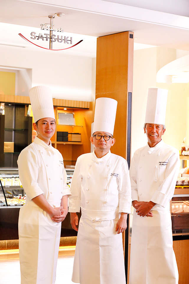 (左から)第7代目シェフパティシエ 森山雄大、第5代目シェフパティシエ現総料理長 中島眞介、第6代目シェフパティシエ 鈴木薫