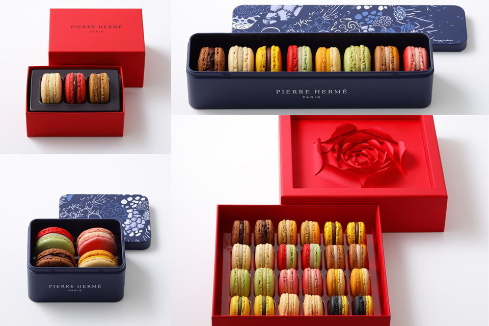 クリスマスにぴったりなギフトを多数ご用意。「ピエール・エルメ・パリ」のスイーツでも定番のマカロンも、ホリデー仕様で登場。深紅の薔薇をかたどった、特別なシーズンにぴったりのマカロンギフト『マカロン 24個詰合わせ「シリーヌ」』。フルーティなマンゴーと華やいだハチミツの「オレア」や魅惑的なパンデピスとシャキッとしたマンダリンの「セレナ」など、クリスマス限定フレーバーを含むマカロン24 個を詰め合わせました。クリスマスのための特別なマカロンの詰合わせ『マカロン3個詰合わせ「レザドラーブル」』は、トリュフブランシュ エ ノワゼット、ショコラ エ フォアグラ、バルサミックを、赤色のギフトBOXに入れてご用意。特別な日に、ぜひシャンパーニュとあわせてご堪能ください。